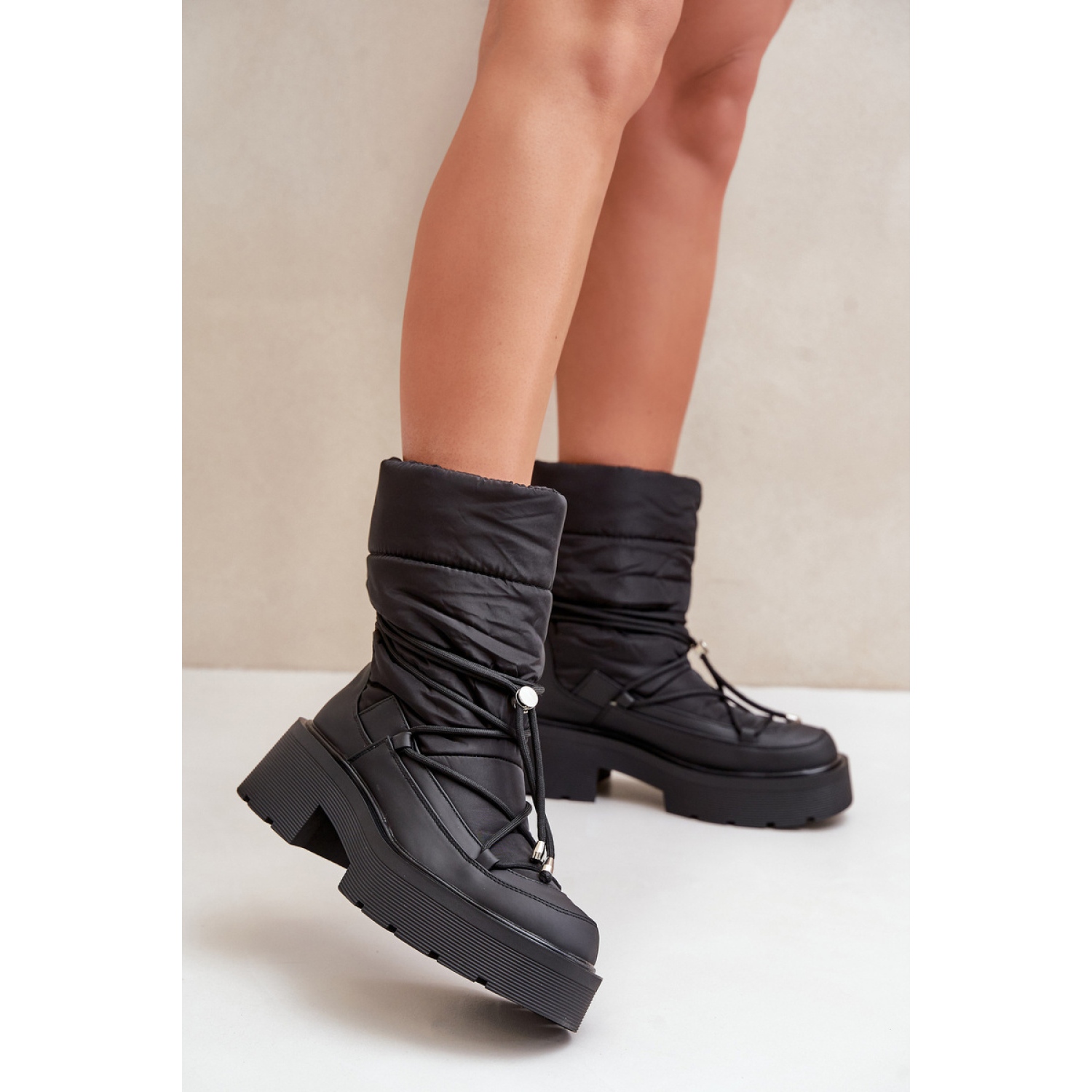 Stivali da neve Modello C-319 Black è un'ottima scelta per i giorni invernali, combinando comfort con un look alla moda. Queste scarpe nere sono realizzate in materiale tessile di alta qualità e in pelle ecologica, che garantisce la loro durata e l'aspetto estetico. Situato su una piattaforma enorme con un'altezza di 3,5 cm e un tallone piatto, che a sua volta è di 6 cm, garantisce stabilità e comfort ad ogni passo.
