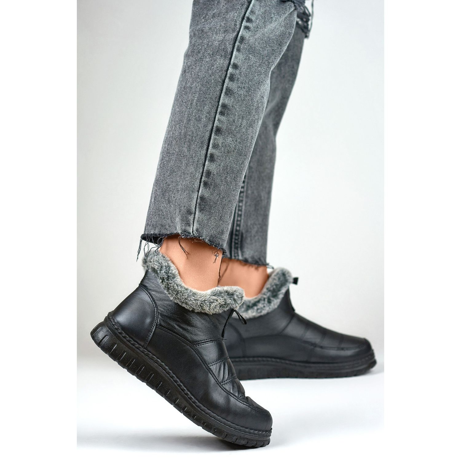 Qui ci sono stivali da neve, il modello nero CH-06B, che è una soluzione ideale per i gelate invernali. Queste eleganti scarpe da donna nera erano realizzate in pelle ecologica di alta qualità, che le rende non solo eleganti, ma anche rispettose dell'ambiente.