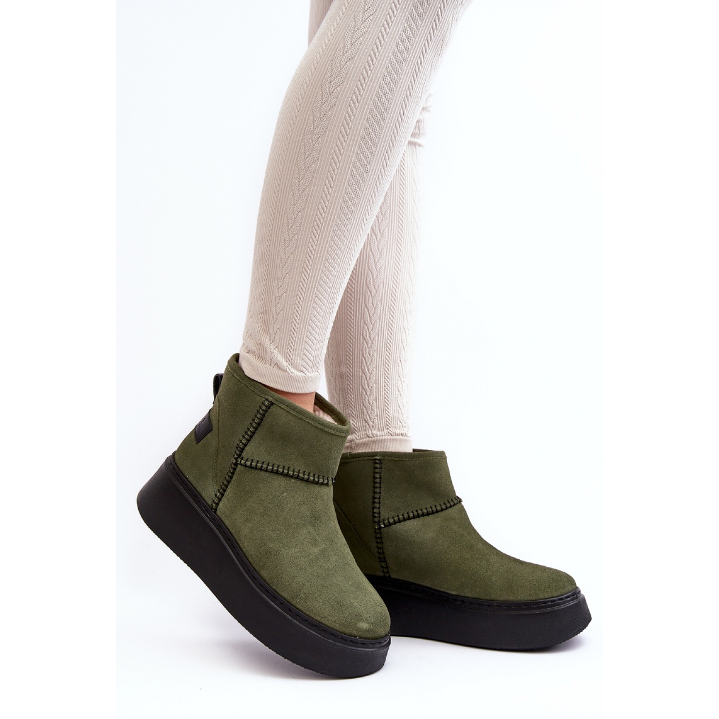 Con l'altezza della parte superiore di 11 cm, questo modello si accompagna perfettamente con varie stilizzazioni, da casual a più eleganti. Il colore verde degli stivali da neve porterà sicuramente freschezza nel tuo guardaroba invernale.