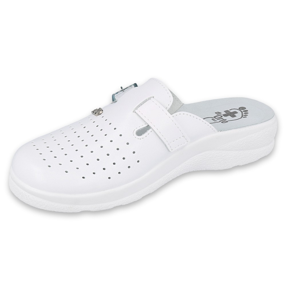 Flip preventivi specializzati dalla linea Dr Orto Med, progettate per il comfort delle persone che lavorano nell'assistenza sanitaria e tutti coloro che trascorrono molte ore in piedi o si muovono intensamente. Realizzati in pelle naturale, forniscono traspirabilità e supporto adeguato ai piedi.