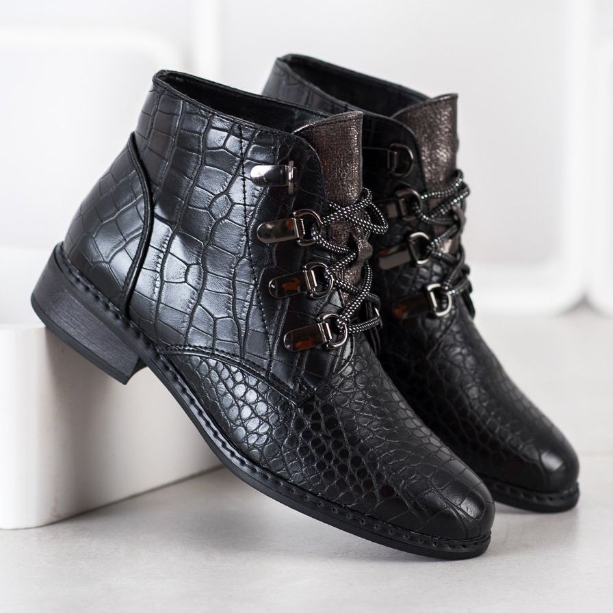 Scopri l'eleganza e il comfort con gli stivali Goodin, che deliziano con la loro combinazione di stile classico e stile alla moda. Questi stivaletti stringati neri con un delicato accento argentato sono la scelta perfetta per le donne moderne che apprezzano lo stile e la funzionalità. Realizzati in pelle ecologica, uniscono cura per l'ambiente e alta qualità.