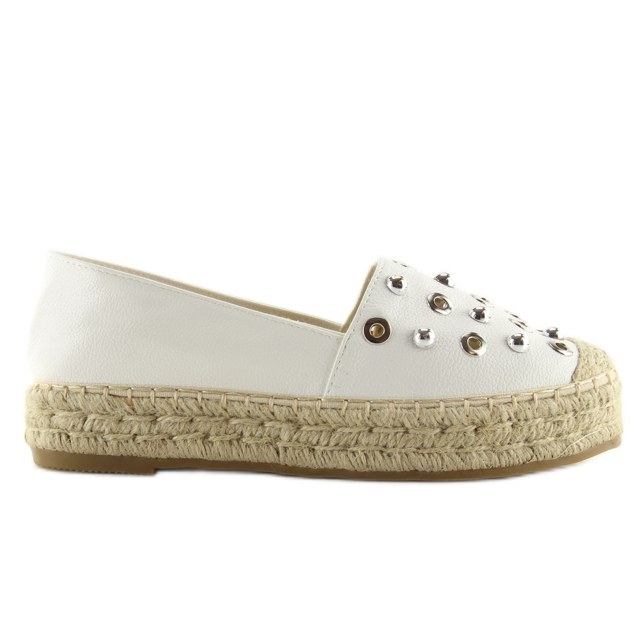 Scopri le espadrillas bianche da donna 7680 bianche: la scelta perfetta per le giornate estive! Queste esclusive scarpe con la suola alta uniscono eleganza e comfort, il che le rende un complemento perfetto per qualsiasi stile. Il cordino intrecciato attorno alla suola e sulla punta conferisce loro leggerezza e sottigliezza, mentre borchie decorative e anelli argentati introducono una nota di originalità che attira l'attenzione.