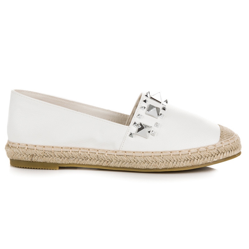 Una caratteristica di queste espadrillas sono le eleganti borchie che conferiscono loro un carattere unico ed un'espressione alla moda. Nonostante il plateau basso di 2 cm, le calzature sono stabili e comode, il che le rende la scelta ideale per le passeggiate estive o gli incontri con gli amici.