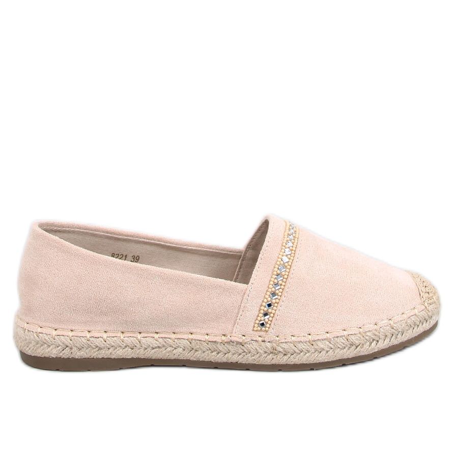Una caratteristica che distingue questo modello è un'applicazione di pietra sottile, dando a Espadrilles un carattere unico. Grazie ad esso, attireranno facilmente look e diventeranno un accento efficace del tuo guardaroba estivo. Il colore beige della pelle scamosciata, combinato con una suola marrone, fa fondere gli espadrille con molti abiti: sia la spiaggia che ogni giorno.