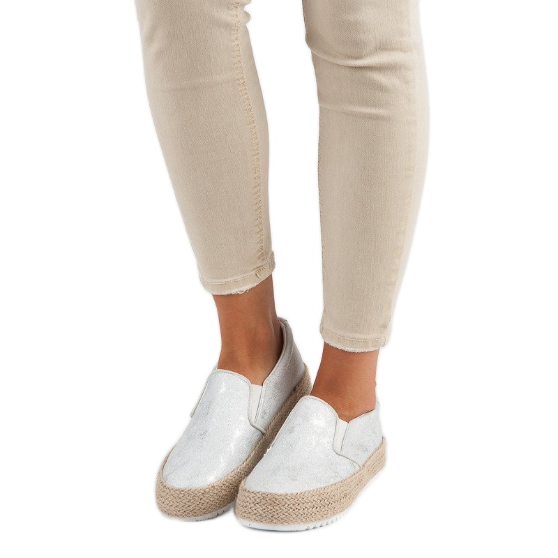 Aggiungi un po' di brillantezza al tuo stile estivo con le espadrillas argento con plateau di Betler. Queste scarpe uniche si abbinano perfettamente sia agli outfit quotidiani che a quelli serali, sottolineandone il carattere casual.