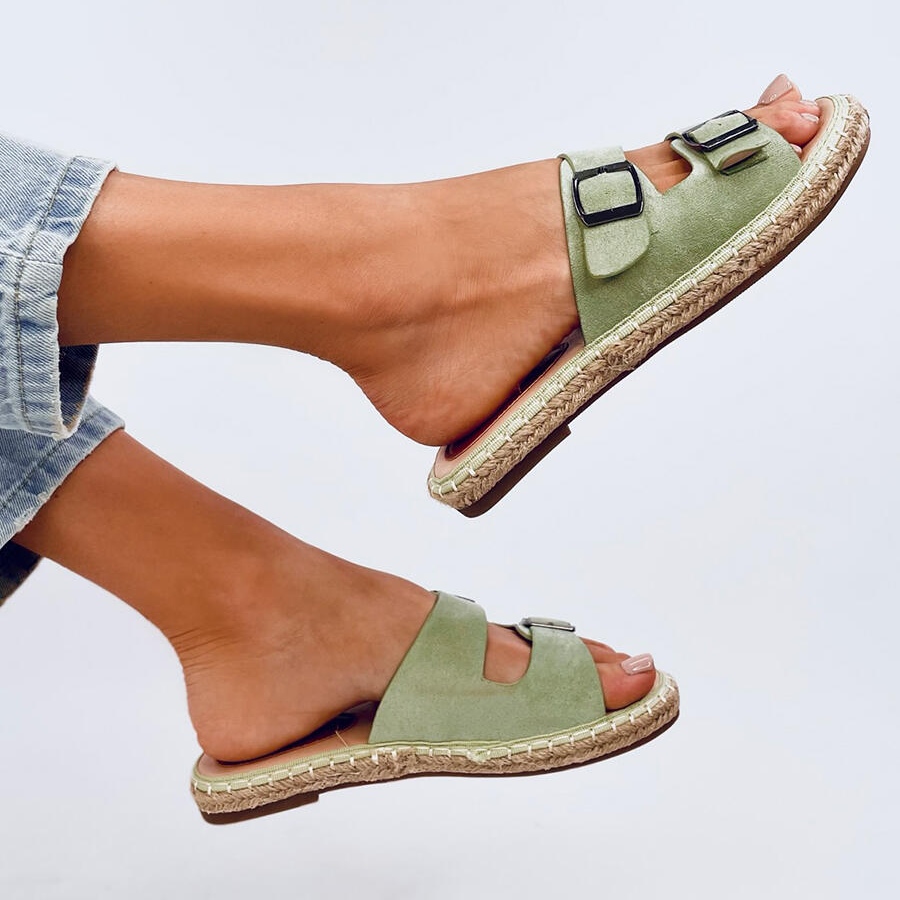 Le infradito espadrillas Maina Green nella tonalità del verde sono la scelta perfetta per le giornate estive. Realizzati in pelle scamosciata ecologica di alta qualità, offrono non solo un aspetto elegante, ma anche comfort da indossare. La suola piatta rifinita da un cordoncino in lino, caratteristico delle espadrillas, aggiunge leggerezza e uno stile casual.