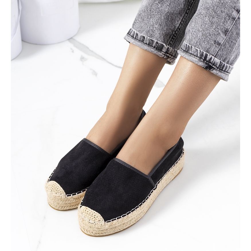 Le espadrillas traforate Capelle sono un must nel guardaroba estivo di ogni donna! Il loro elegante colore nero e la tomaia in pelle scamosciata le rendono estremamente universali e si adatteranno perfettamente a vari stili estivi. La suola alta, beige, alta 3,5 cm, le rende leggere e allo stesso tempo garantisce comodità durante la camminata.