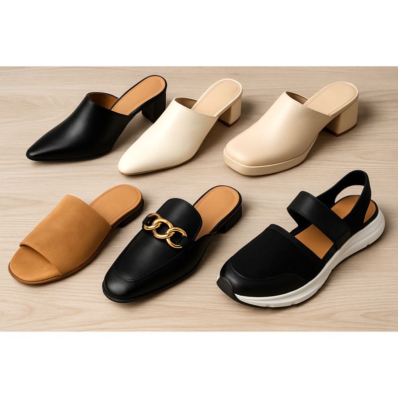 Il mondo dei muli di ufficio è estremamente diversificato, offre modelli per ogni occasione e stile. I tacchi classici bullonati sono una scelta per le donne che apprezzano l'eleganza: un'altezza di 5-7 cm fornisce una figura sottile senza un eccessivo carico del piede. Le cozze di suola piatta sono perfette per gli uffici casual del codice di abbigliamento, che offrono il massimo comfort durante i lunghi giorni lavorativi. I muli sulla piattaforma stanno diventando sempre più popolari, il che si aggiunge alti centimetri, mantenendo la stabilità. Per gli amanti del minimalismo, sono state create cozze in stile scandinavo: linee semplici, colori neutri e pelle di alta qualità. A sua volta, le cozze con fibbie o catene decorative sono una proposta per quelle coraggiose che vogliono aggiungere il carattere della loro stilizzazione d'ufficio. Vale la pena prestare attenzione ai muli ibridi: combinare elementi di calzature sportive con design elegante, ideale per professionisti dinamici. Anche i materiali contano: la pelle naturale garantisce una durata ed eleganza, la pelle scamosciata aggiunge trame e i moderni materiali sintetici offrono facilità di cura e varietà di colori.
