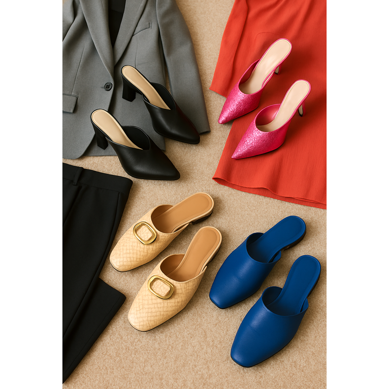 L'universalità delle cozze li fa funzionare in varie situazioni professionali. Per importanti riunioni di lavoro, scegli le cozze classiche su un tallone stabile in un colore sommerso: i muli in pelle nera con uno spitz delicato aggiungerà professionalità a qualsiasi stilizzazione. Durante la presentazione, quando devi resistere molto, indossare cozze su un tallone o una piattaforma inferiore che garantirà stabilità e comfort. Ogni giorno nelle cozze dell'ufficio su una suola piatta o un tacco piccolo sono fantastici: puoi permetterti di più colore o decorazioni delicate. Gli eventi di networking sono un'opportunità per mostrare il tuo stile: muli con dettagli interessanti, come morsetti in metallo o elementi intrecciati, sarà un ottimo antipasto di conversazione. Per l'azienda dopo il lavoro, puoi scegliere modelli più audaci: cozze su un tallone più alto, con paillettes o colori intensi. Ricorda il paio di scarpe di riserva in ufficio: se i muli sono scomodi durante una lunga giornata, puoi cambiarle. Vale anche la pena avere un kit di cura delle calzature nel cassetto della scrivania in modo che i muli sembrino sempre impeccabili.