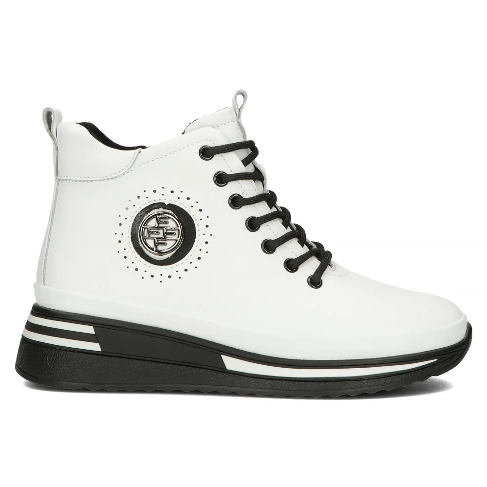 L'altezza della piattaforma di 6 cm aggiunge sottigliezza e allo stesso tempo allunga otticamente le gambe, rendendo i piedi estremamente attraenti. Il bianco, senza il motivo, rende universali gli stivali, facilmente combinando con varie stilizzazioni, sia casuali che più eleganti.