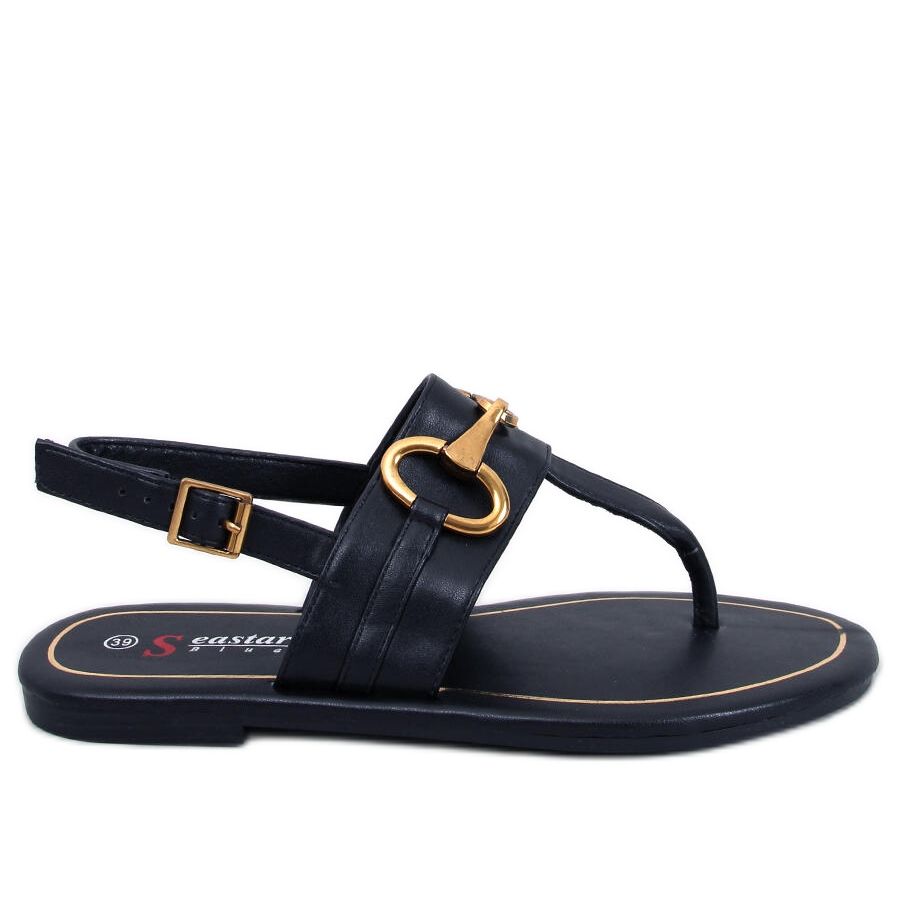 La combinazione di accenti neri e dorati aggiunge fascino e la pelle ecologica come materiale esterno garantisce durata ed estetica. Grazie alla fibbia, i sandali si adattano perfettamente al piede, e la mancanza della punta tradizionale sottolinea la sottile leggerezza dell'intero stile.