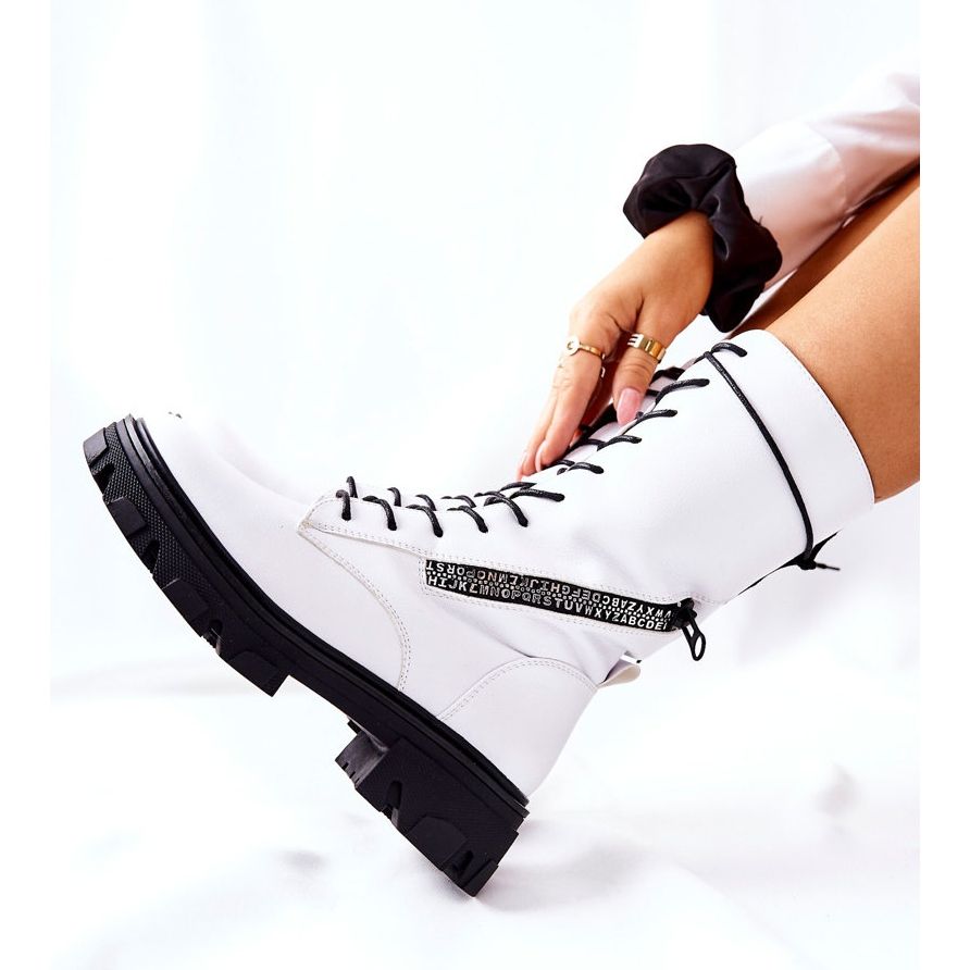 Una piattaforma stabile con un'altezza di 2,5 cm e un tacco piatto (4,5 cm) rendono gli stivali comodi, stabili e perfetti per l'uso quotidiano. Inoltre, la cerniera laterale e l'allacciatura facilitano la calzata e la regolazione delle scarpe al piede. La cerniera decorativa li rende unici, distinguendoli dagli altri modelli.