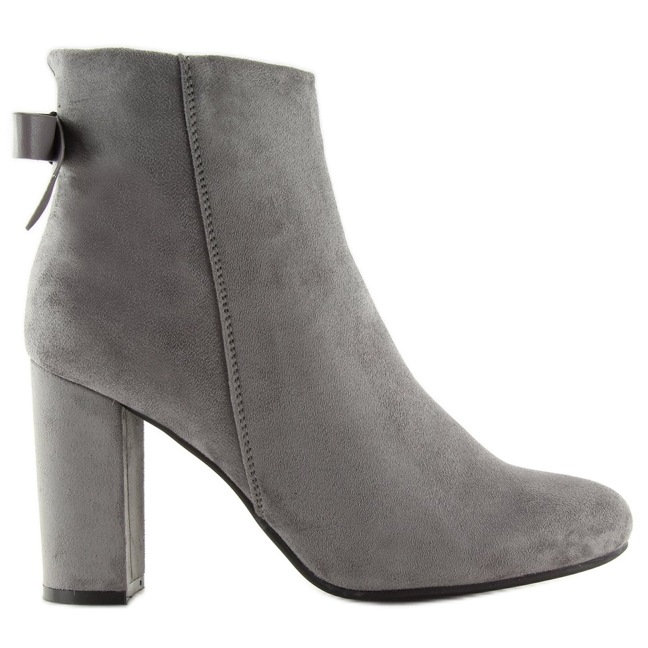 Scopri l'eleganza e la comodità con gli stivaletti grigi con tacco E5120 L.GREY! Questi stivali da donna unici sono realizzati in pelle scamosciata ecologica di alta qualità, che aggiunge non solo stile ma anche durata. Un grazioso fiocco posto sul retro della tomaia dona loro un carattere unico e femminile, mentre il tacco sottile alto 9 cm allunga efficacemente le gambe, sottolineando la tua figura.