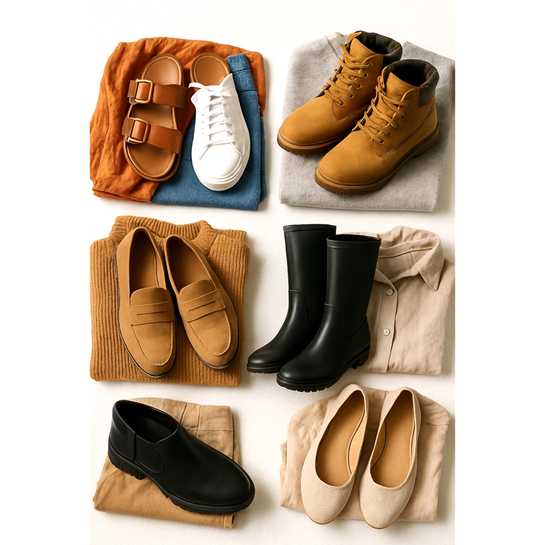 • Clima tropicale/caldo: Più sandali, materiali traspiranti