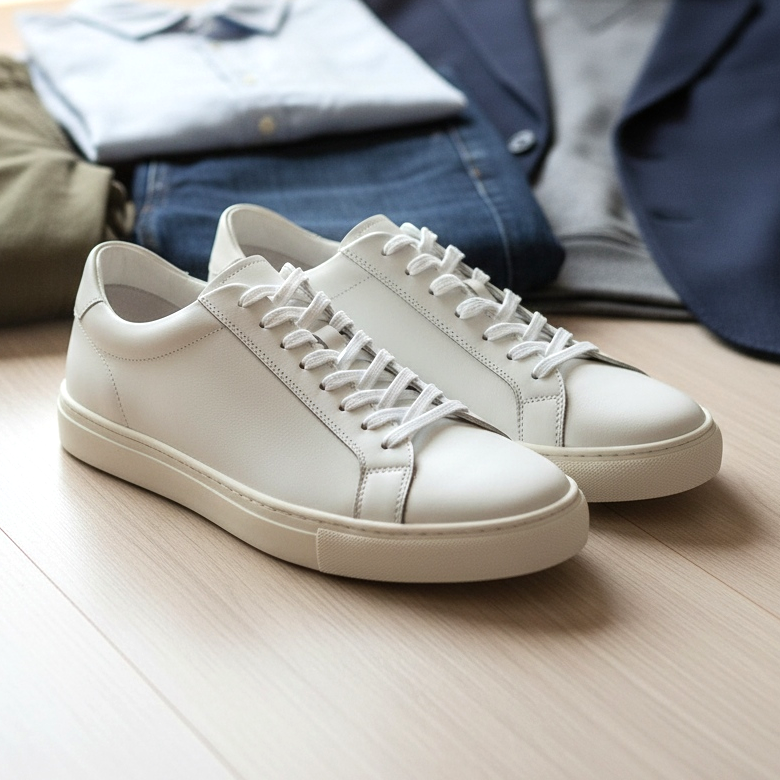 Le sneakers bianche sono un must assoluto per l'uomo moderno. Sono così versatili che puoi indossarli con pantaloni chino e camicia, jeans e felpa, o anche con una giacca leggera in stile smart casual.