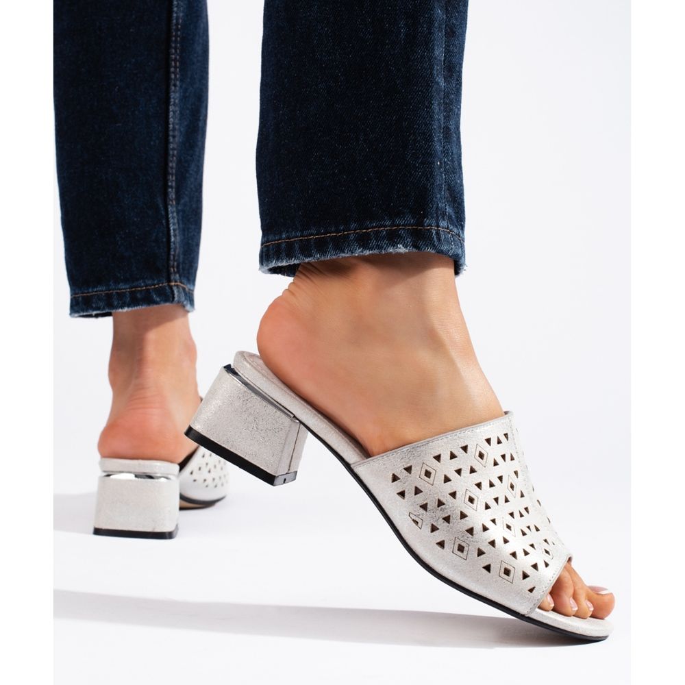 - Modello: Infradito argento traforato con tacco basso