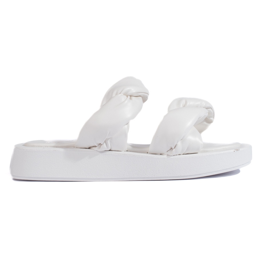 Presentiamo infradito bianchi su una suola spessa da un produttore rispettabile, un altro marchio che sarà perfetto per le stilizzazioni quotidiane. Questi eleganti, ecco un approccio rinfrescante ai lembi classici che combinano il comfort con un'espressione della moda.