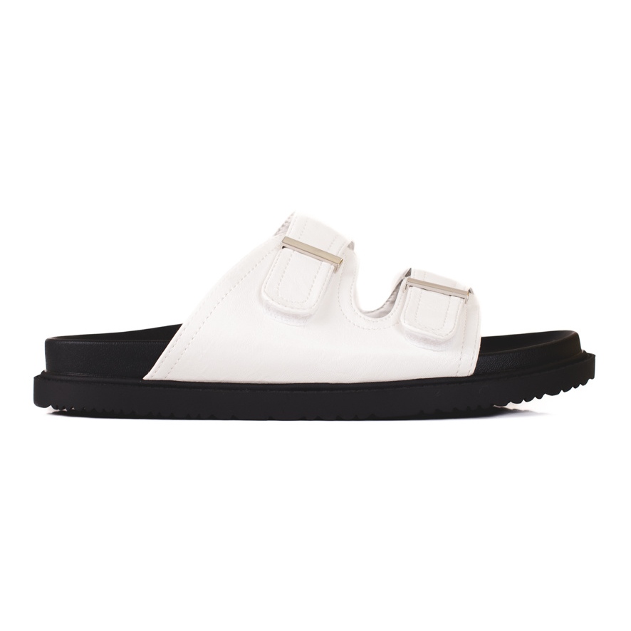 La suola con battistrada, realizzata in plastica, garantisce grip e durata adeguati, che le rendono una scelta affidabile per l'uso quotidiano. Un ulteriore vantaggio è la suola nera, che contrasta perfettamente con il colore bianco delle infradito, aggiungendo loro un tocco alla moda.