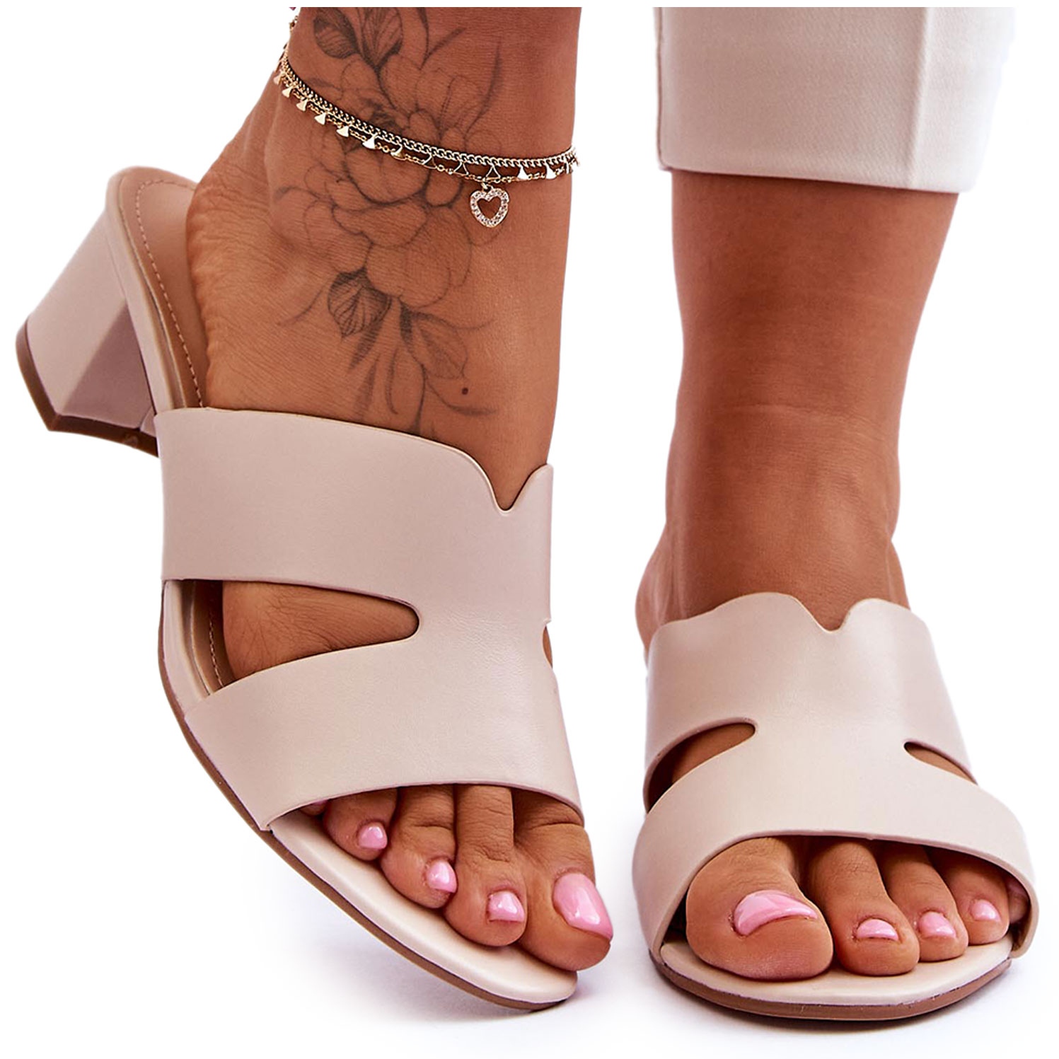 Flap eleganti e senza tempo fatti interamente in pelle ecologica in una tonalità di beige universale. Un semplice e classico taglio incorporato su un post basso e stabile (tallone 4,5 cm) rende il modello combinare lo stile con il comfort - ideale per un aspetto quotidiano e più formale.