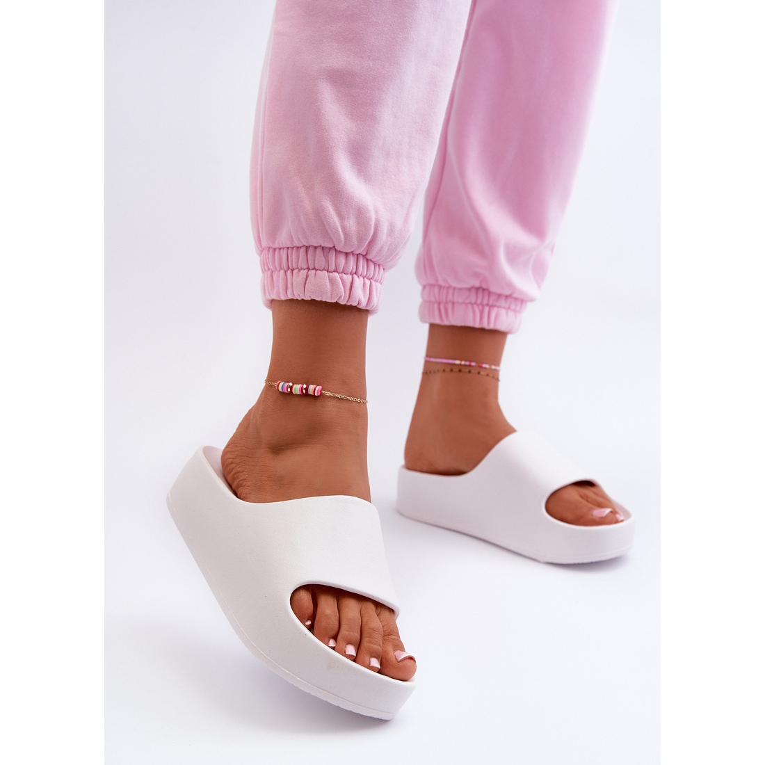 Le infradito da donna sulla piattaforma di schiuma sono caratterizzate da imballaggi originali e sono disponibili in un elegante pacchetto di plastica. Il loro colore universale e bianco significa che corrispondono a molti abiti estivi e grazie al design leggero non grattiscano le gambe anche durante a lungo utilizzo.