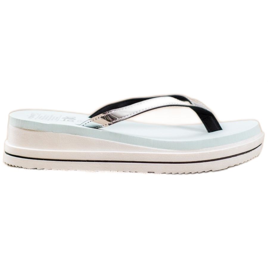 Grazie all'inserto in gomma e alla tomaia composta da due strisce argentate, queste scarpe uniscono la comodità ad un look alla moda. Perfette per le uscite di tutti i giorni, disponibili nella collezione KeeShoes, arricchiranno quasi sicuramente il vostro guardaroba estivo.