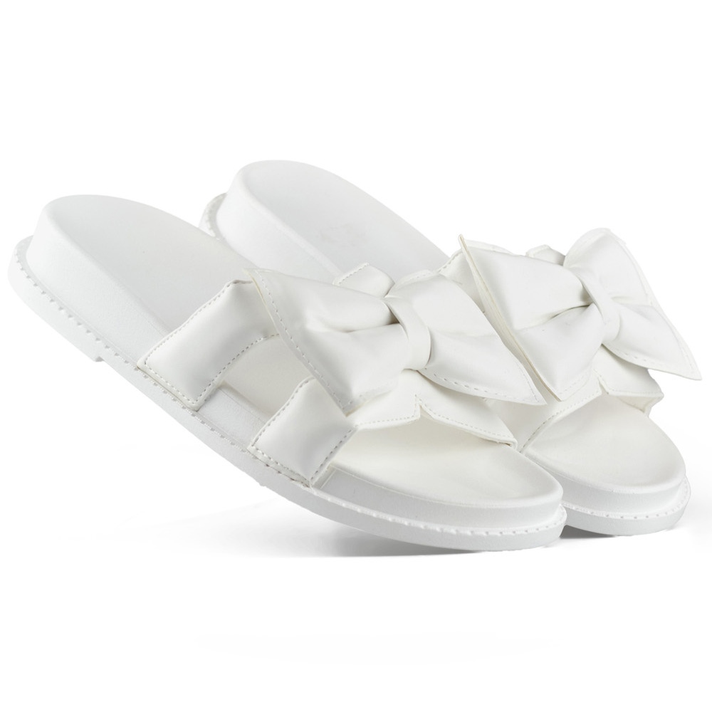Infradito da donna bianche con fiocco, realizzate in ecopelle bianco
