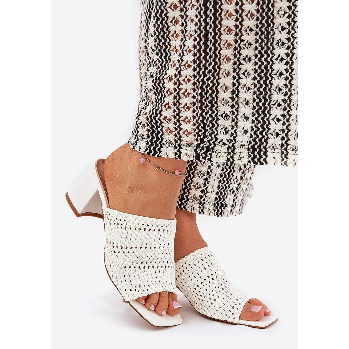 Presentiamo infradito da donna con i tacchi in un'elegante miglia di colore bianco per la prossima estate! Queste fluttuanti eleganti combinano un design moderno con un comfort eccezionale, il che li rende un'ottima scelta per ogni occasione. Situato su un tallone stabile di tipo 6,5 cm, assicurati il comfort anche per tutto il giorno.