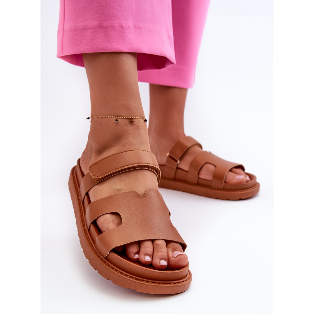 Inna marka Infradito da donna in ecopelle con velcro Camel Silaka marrone