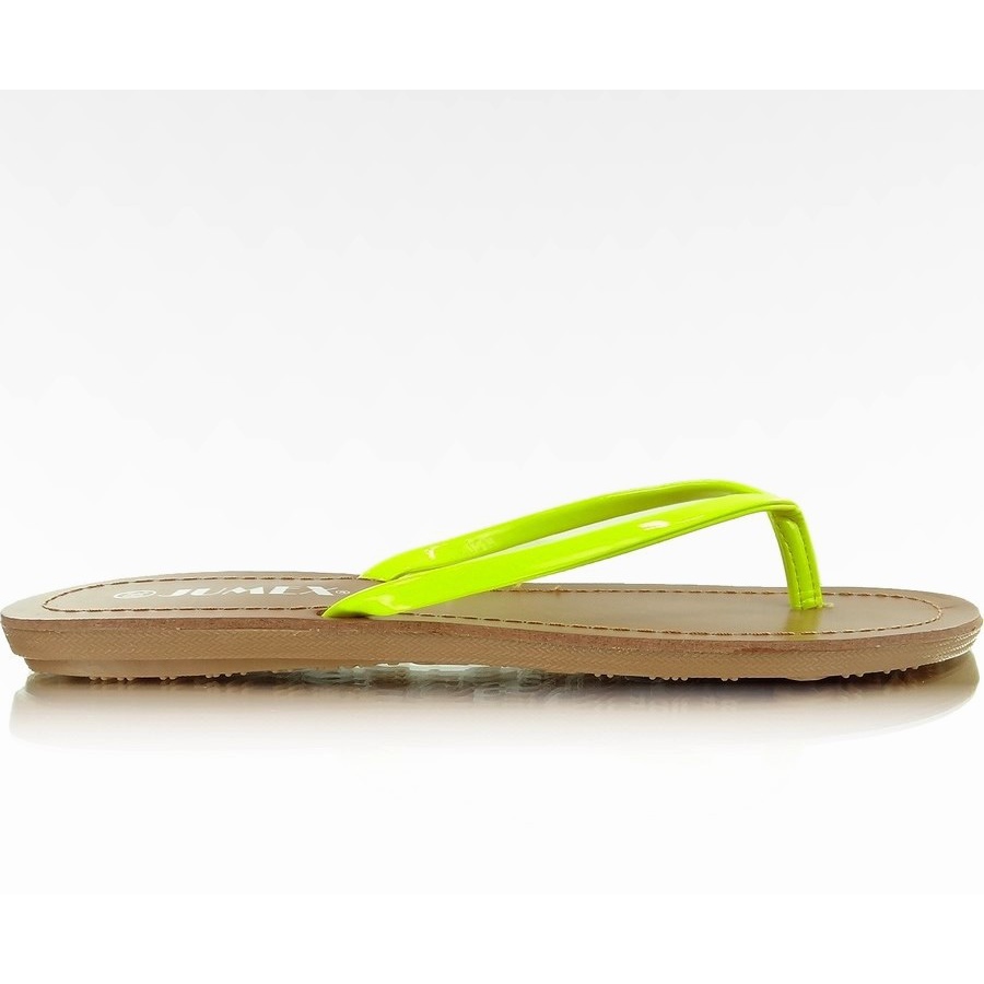 Infradito energiche e classiche, perfette per l'estate. La sottile striscia laccata si abbina magnificamente al colore giallo intenso e la suola "carnosa" offre un supporto confortevole e un buon sostegno del piede. Il design minimalista e senza motivi fa sì che le infradito si adattino sia allo stile da spiaggia che a un look urbano e quotidiano.