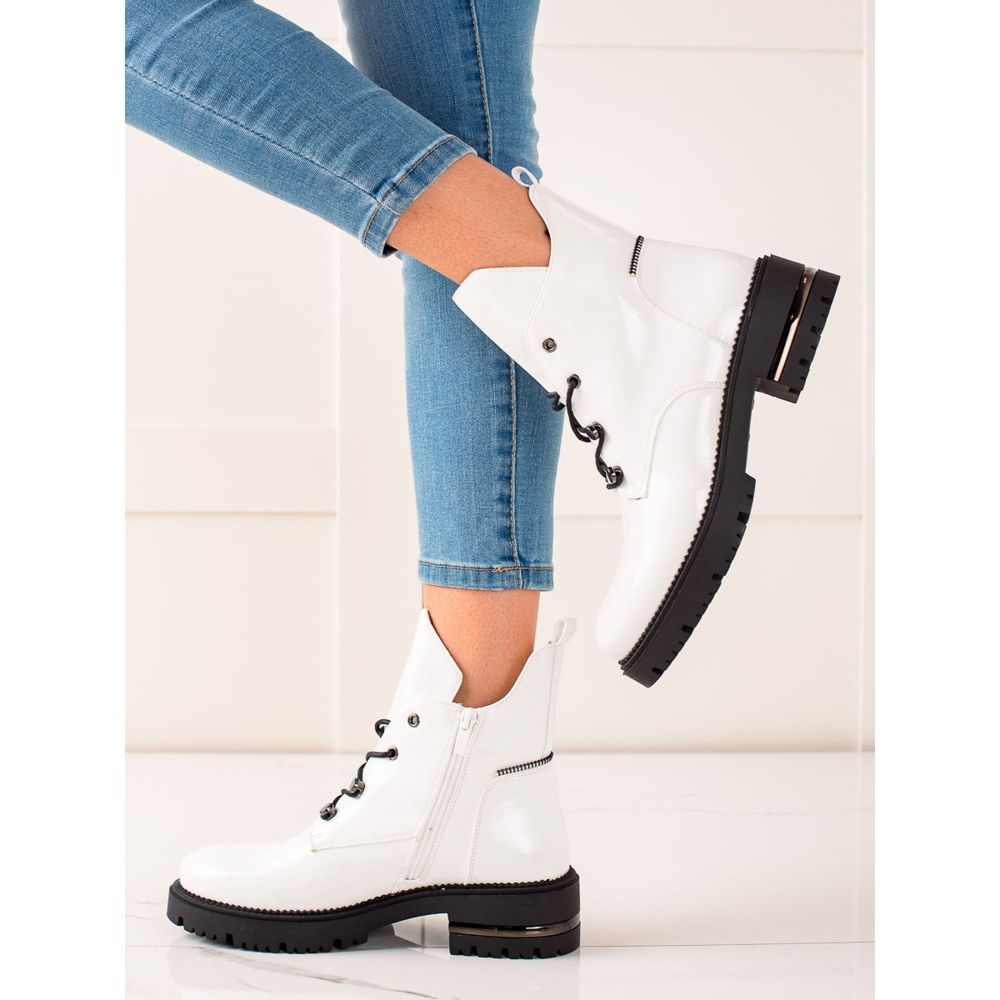 Presentiamo le stringate alla moda Sergio Leone in un elegante colore bianco, che sarà un complemento perfetto per qualsiasi stile autunnale e invernale. Questi eleganti stivaletti, pensati pensando alle donne, combinano lo stile casual con le ultime tendenze della moda.