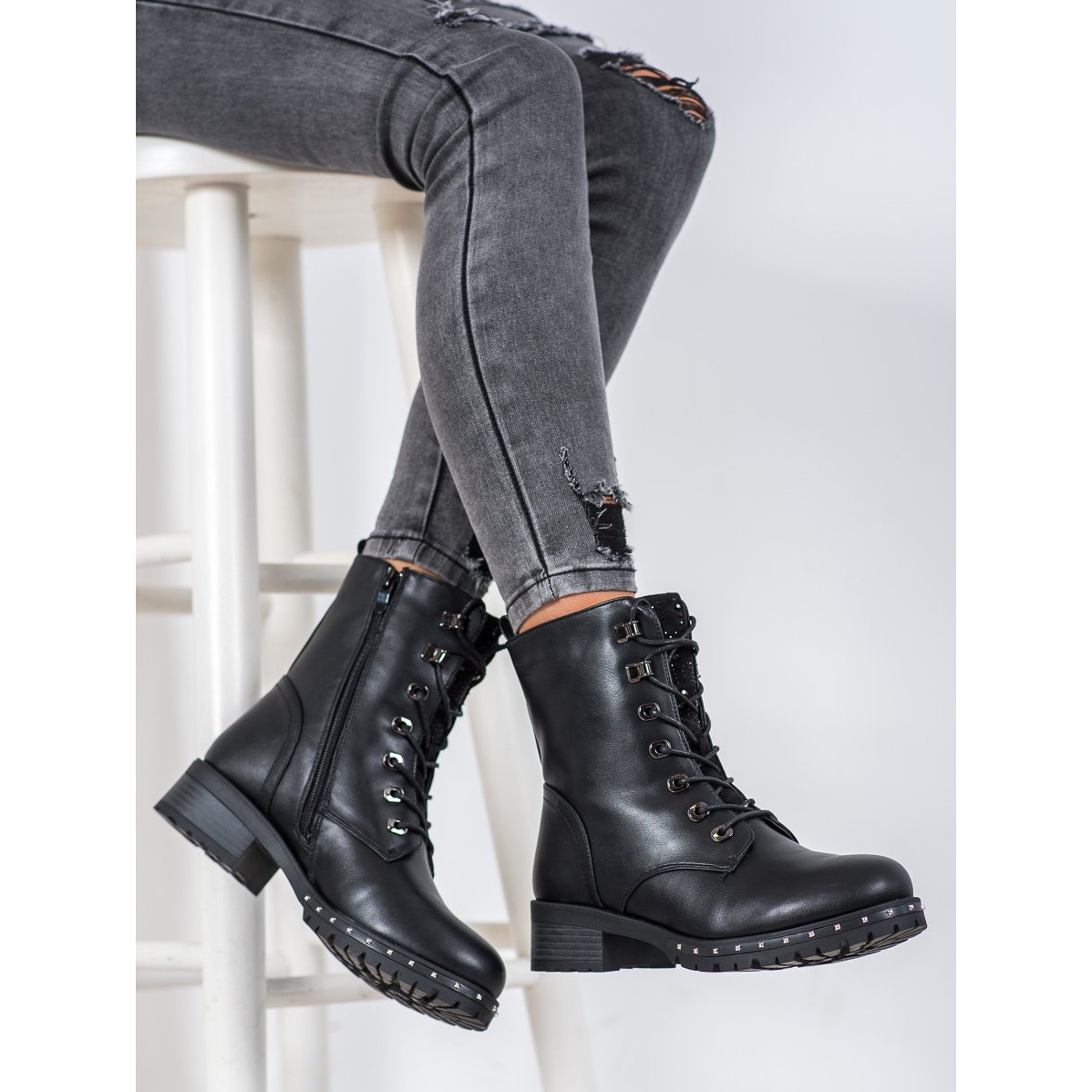 Questi operai sono perfetti per la stagione autunno/inverno, abbinandosi perfettamente allo stile rock che attirerà sicuramente l'attenzione. Ulteriori caratteristiche, come la chiusura con lacci e la cerniera, facilitano l'inserimento e la rimozione delle scarpe.