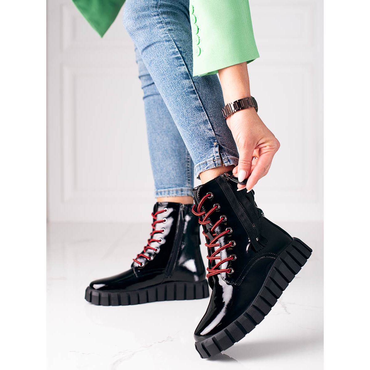 Scopri l'eleganza e il comfort con i lavoratori neri con piattaforma alta del produttore W. Potocki. Questi esclusivi stivaletti da donna si adattano perfettamente allo stile casual e rock, il che li rende un'ottima scelta per l'uso quotidiano, soprattutto nella stagione autunno/inverno.