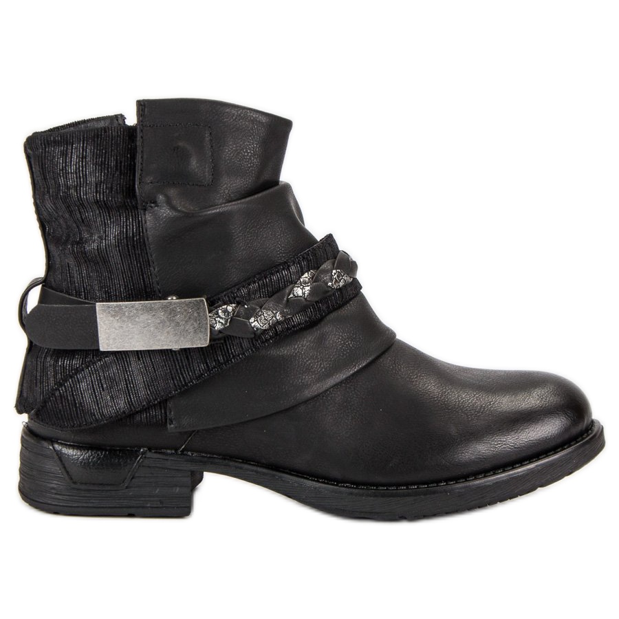 Questo modello si distingue non solo per la sua funzionalità, ma anche per il suo design originale. La parte superiore delle scarpe è arricchita con varie texture di pelle, che conferiscono loro un carattere unico. Un ulteriore vantaggio è l'elegante cintura intrecciata con fibbia decorativa, che sottolinea l'estetica rock. Un tacco piatto alto 3 cm rende le lavoratrici estremamente comode durante l'uso, perfette per lo styling di tutti i giorni.