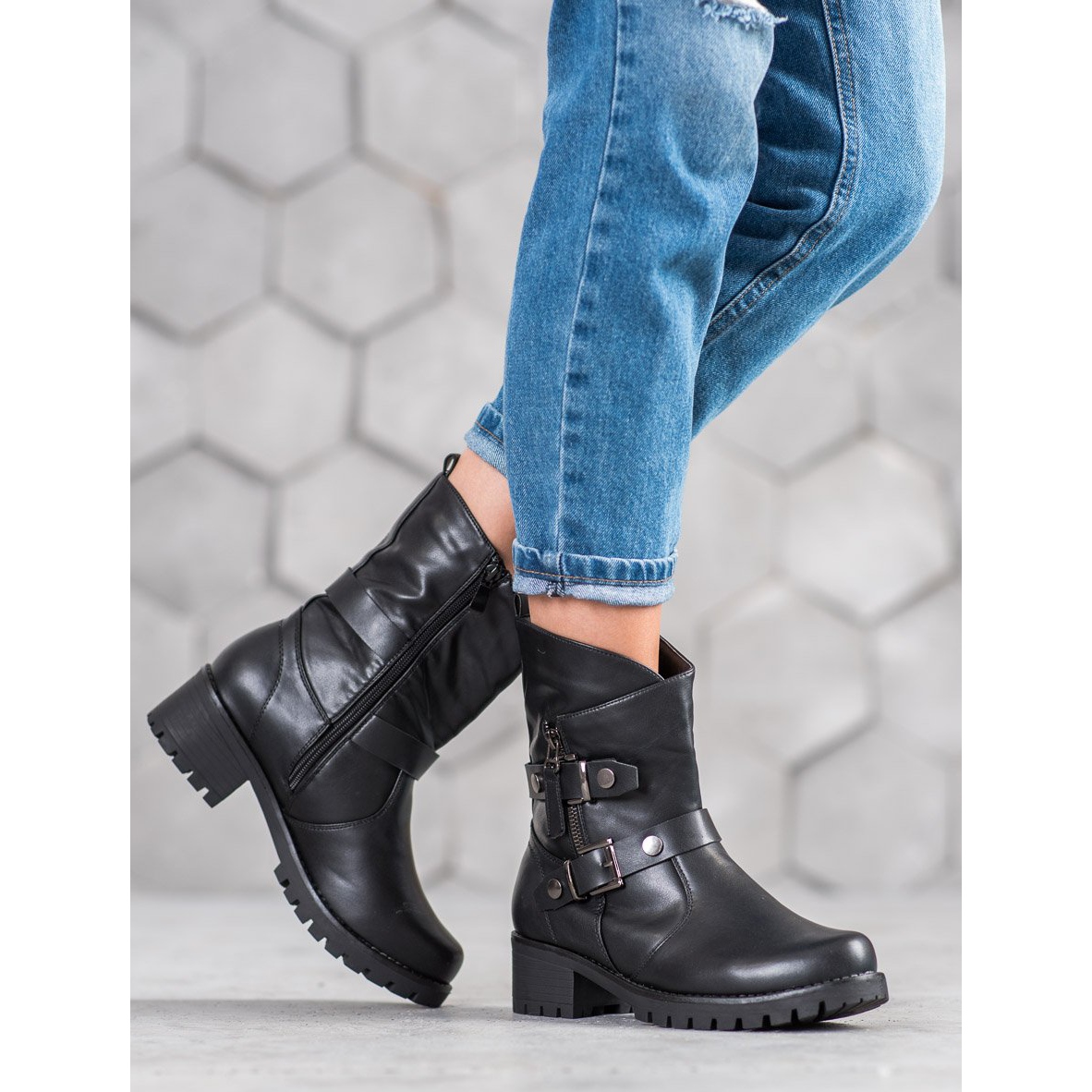 Presentiamo i lavoratori Nio Nio in nero: calzature perfette per una donna moderna che apprezza il comfort e lo stile. Realizzati in pelle ecologica di alta qualità, questi stivaletti si caratterizzano non solo per il loro aspetto alla moda, ma anche per la funzionalità fornita dalla tomaia alta. Grazie ad esso i tuoi piedi saranno protetti dalle condizioni atmosferiche sfavorevoli e ti sentirai a tuo agio anche nelle giornate più fredde.