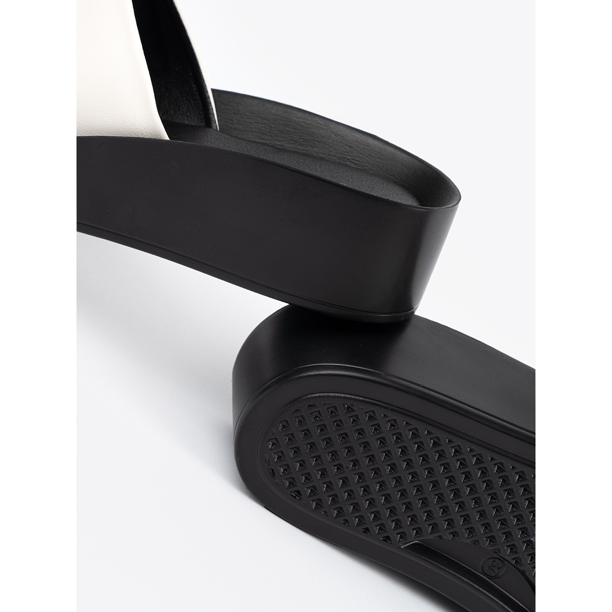Dettagli: Goodin Le infradito in bianco e nero su un cuneo basso