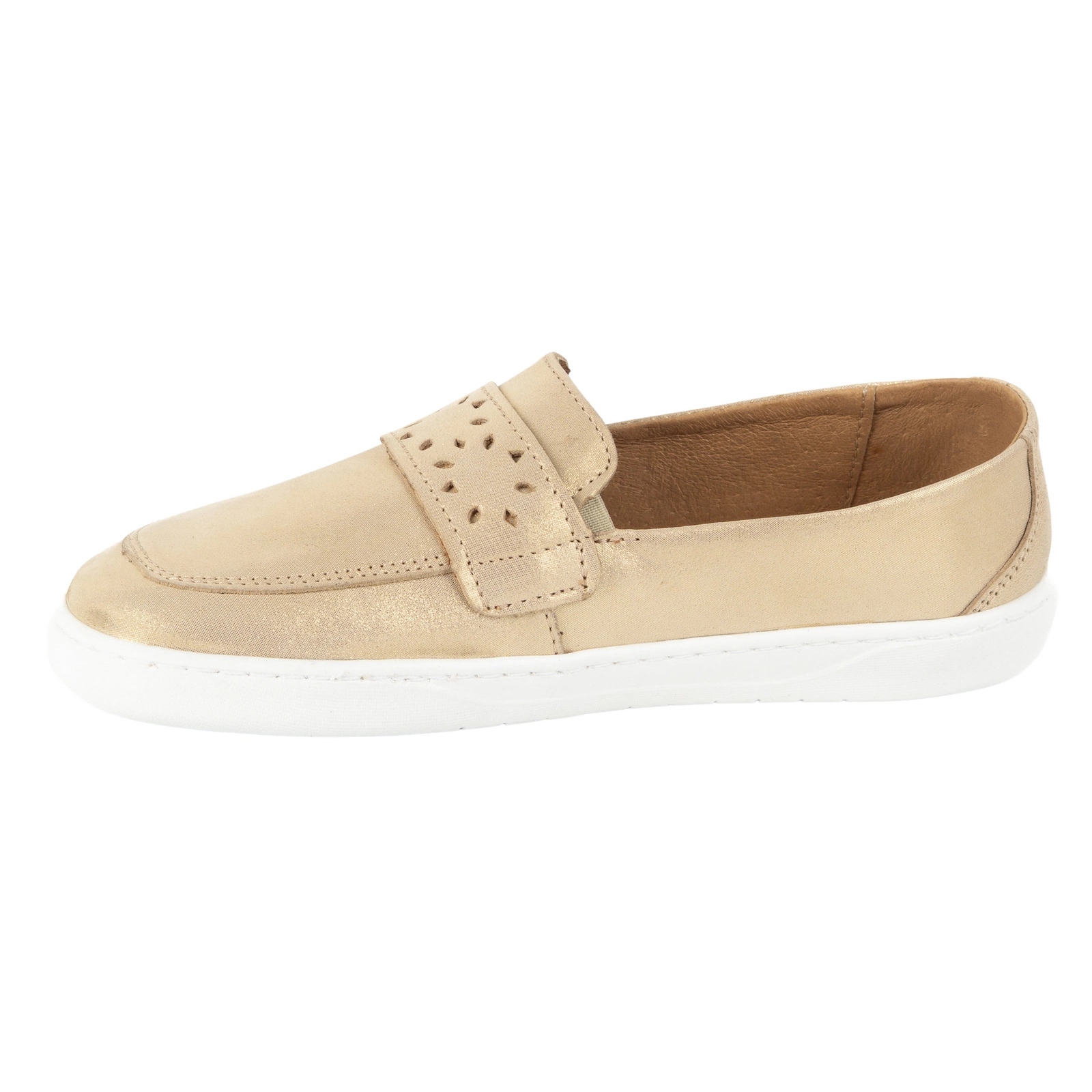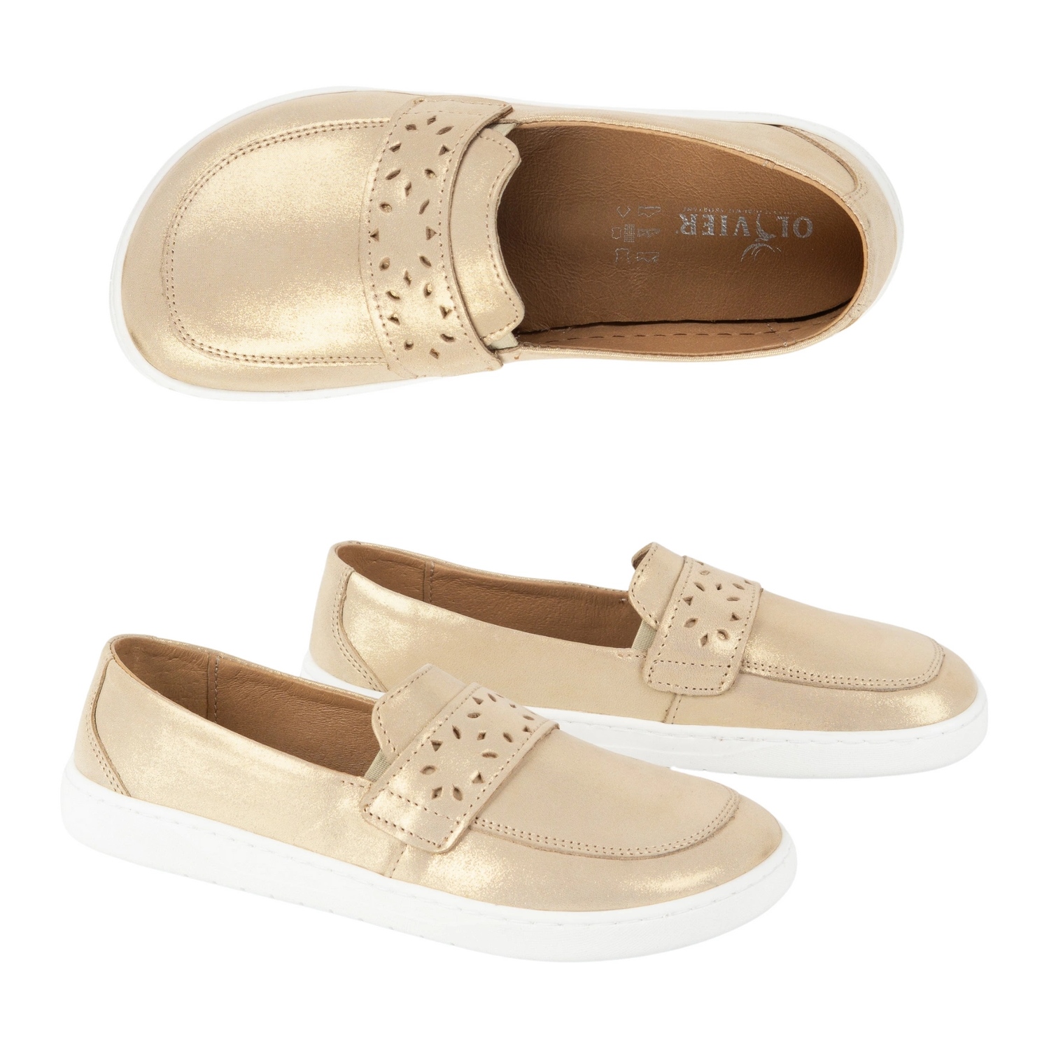 I mocassini Inga a piedi nudi di Olivier sono un'ottima scelta per le donne che vogliono combinare l'eleganza con il comfort di utilizzo. Questo modello in un delizioso colore dorato combina uno stile senza tempo con un approccio innovativo alle calzature. Realizzati in pelle naturale, garantiscono durata ed estetica e allo stesso tempo si prendono cura della salute dei piedi grazie al taglio anatomico.