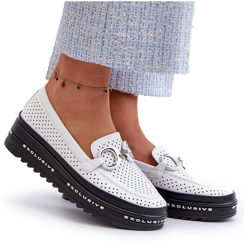 I mocassini da donna in pelle Openwork sulla piattaforma S. Barski LR750 in White è una proposta per le donne che vogliono combinare comfort con l'eleganza. Realizzati in pelle naturale di alta qualità, questi mocassini deliziano un modello di lavoro aperto che dà loro leggerezza e originalità.