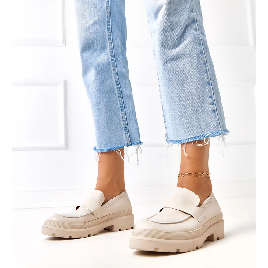 Grazie al colore beige, questi mocassini si fondono perfettamente con varie stilizzazioni - da casual a un po 'più elegante. La suola in plastica garantisce stabilità e adesione, il che li rende la scelta perfetta per le giornate estive.