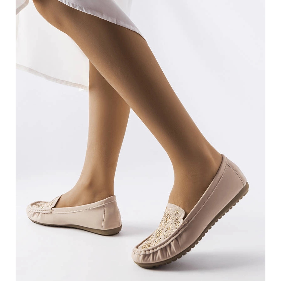 Mocassini beige decorati con ty-80 del modello zirconi gamache