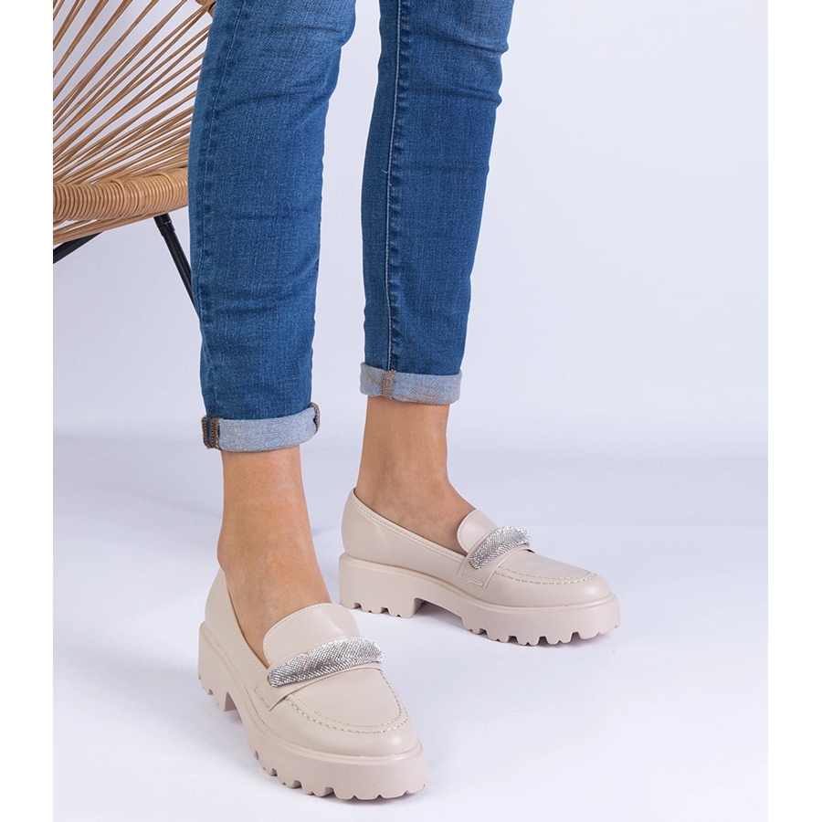 Presentiamo mocassini da donna beige decorati con zirconi - una proposta ideale per le donne che apprezzano l'eleganza e il comfort. Queste scarpe eleganti di un marchio affidabile combinano un design alla moda con funzionalità, il che li rende un'ottima scelta sia su base giornaliera che per occasioni più formali.