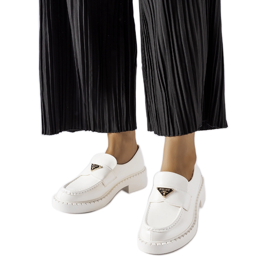 Moderni e leggeri mocassini in una puntata universale e bianca - ideale per le giovani generazioni che apprezzano il comfort e l'aspetto alla moda. Il taglio scorrevole con una punta rotonda garantisce il comfort su base giornaliera e il design minimalista può essere facilmente integrato in stilizzazioni casuali e leggermente più formali.