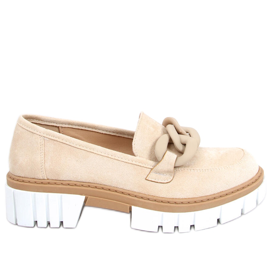I mocassini beige Juni si abbinano perfettamente a vari stili, da quello casual a quello più elegante. Il motivo liscio e la catena decorativa conferiscono loro un carattere moderno. La punta tonda e la chiusura slip-on facilitano la calzata e l'adattamento al piede, mentre il materiale interno in pelle ecologica garantisce durata e comfort di utilizzo.