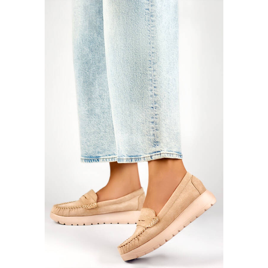 ** Mocassine femminili su una spessa Sole in pelle scamosciata beige 24-21338Be **
