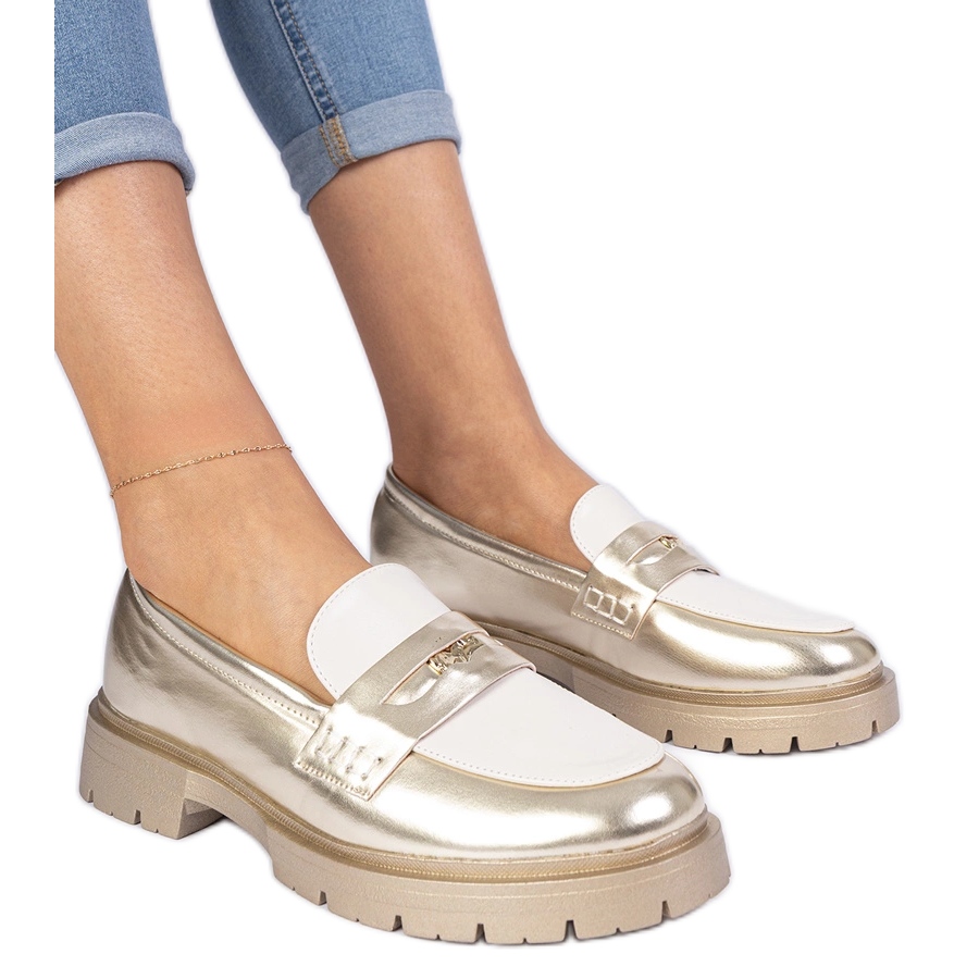 Dettagli: Mocassini da donna dorata con un inserto bianco