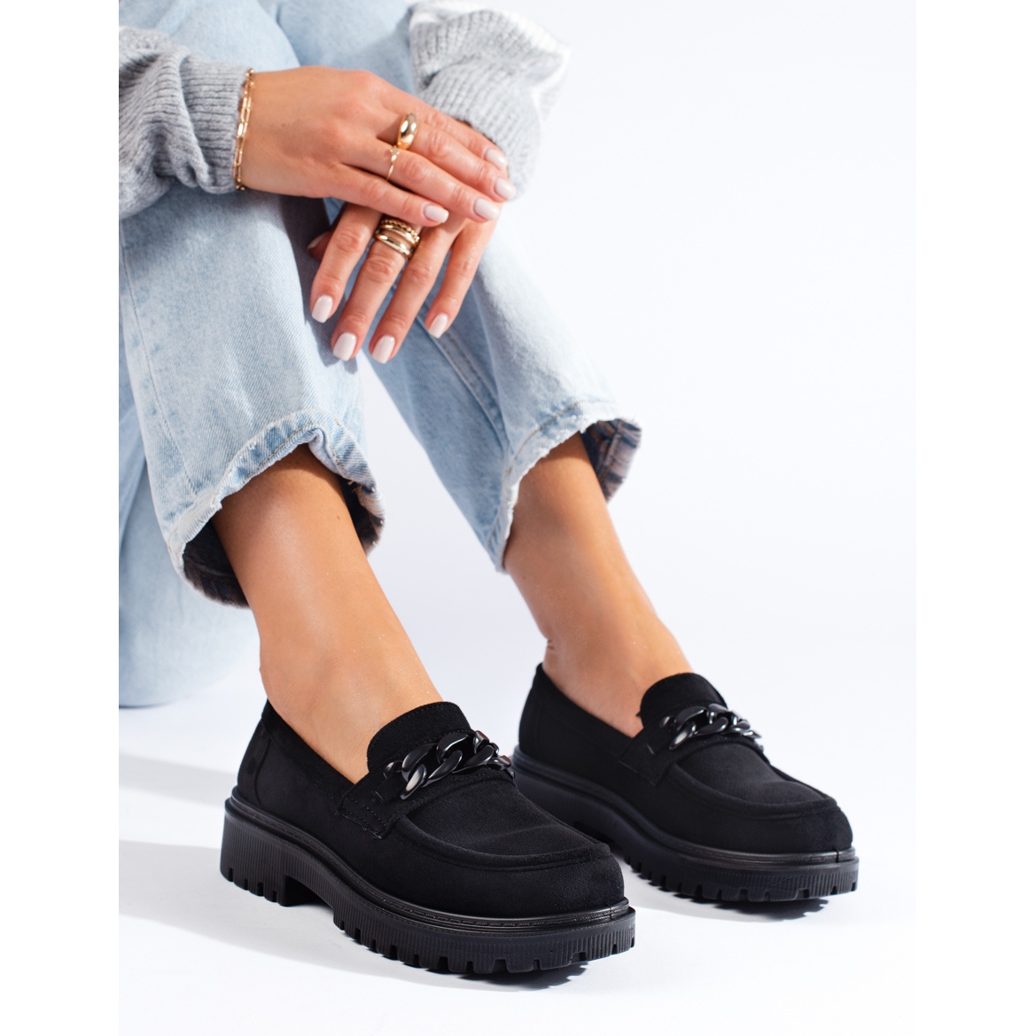 La collezione KeeShoes presenta calzature che uniscono le tendenze attuali al buon gusto e alla funzionalità. Il modello di mocassini da donna in camoscio "Black" soddisferà sicuramente le aspettative anche delle fan più esigenti dello stile urbano che cercano calzature comode ed eleganti per ogni occasione.