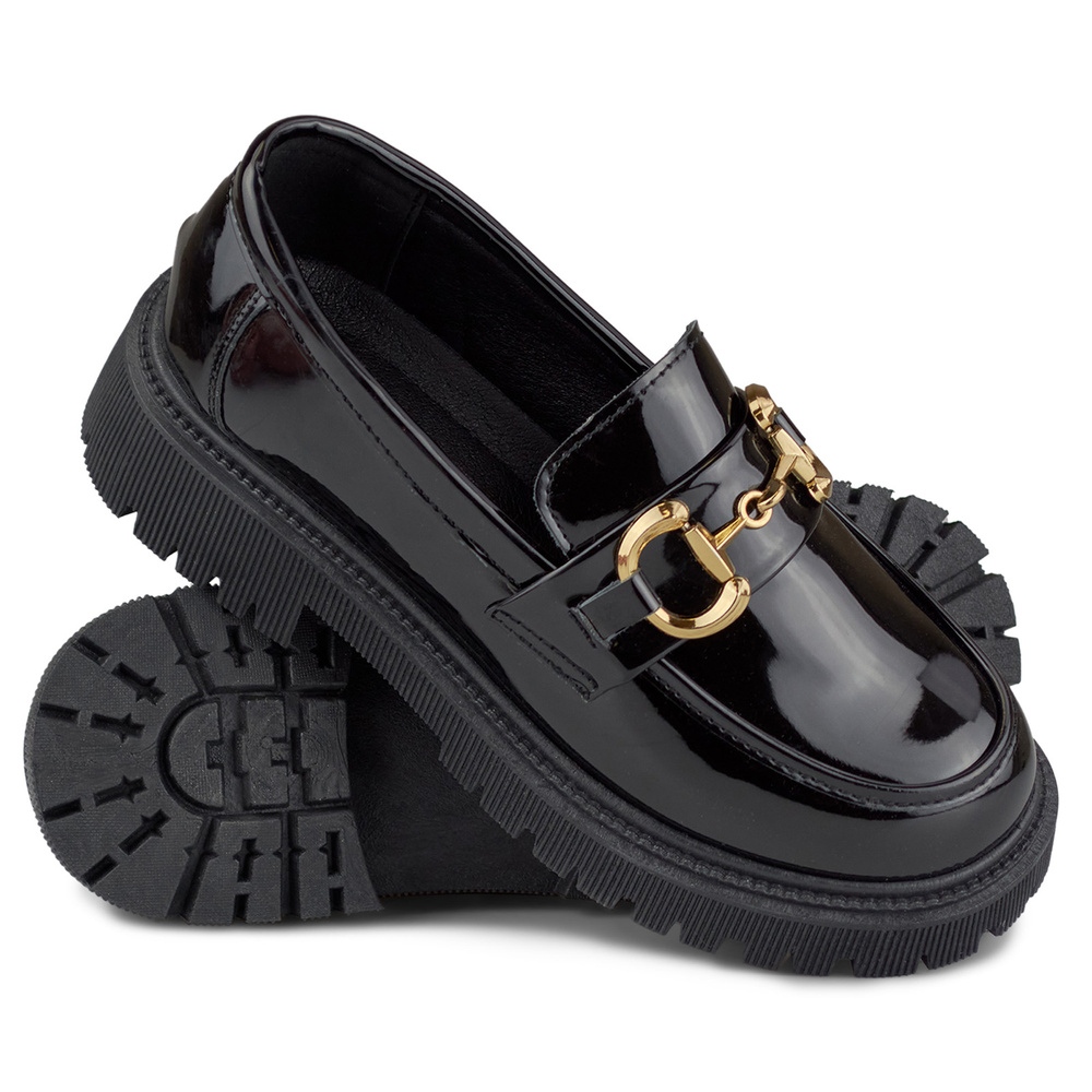 Dettagli: Mocassini da donna neri laccati con decoro nero
