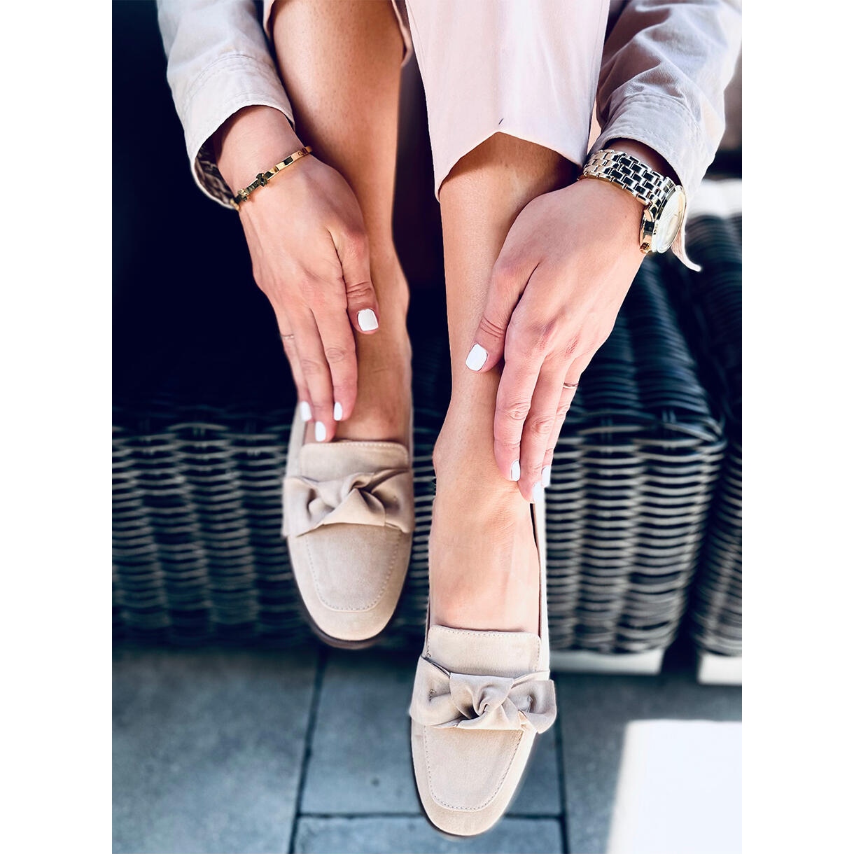 Non aspettare, rendi questi bellissimi mocassini beige una decorazione del tuo guardaroba e sottolinea il tuo stile unico!