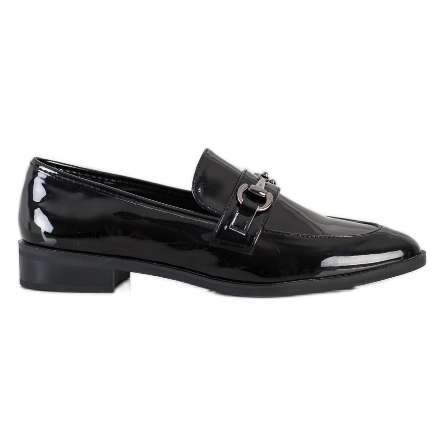 Realizzati in vernice ecologica, i mocassini hanno un aspetto estremamente elegante e sono facili da pulire. La loro forma sottile, la punta a mandorla e il tallone integrato e irrigidito garantiscono comfort e stabilità quando indossati. Il modello è caratterizzato da una chiusura slip-on, che rende più semplice indossare e togliere le scarpe.