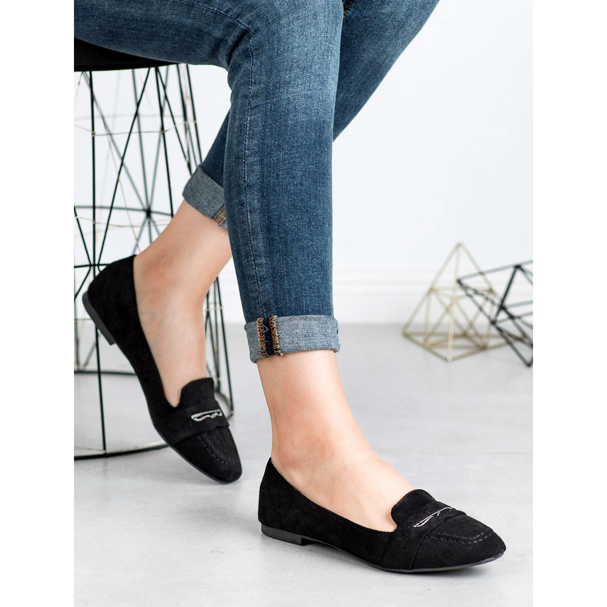 Questi sono i mocassini Small Swan neri che soddisfano perfettamente le esigenze delle donne moderne. Grazie alla struttura in pelle scamosciata e al materiale ecologico, puoi goderti sia lo stile che il rispetto dell'ambiente. Queste scarpe eleganti sono perfette per gli spostamenti quotidiani in città, così come per gli incontri meno formali con gli amici.