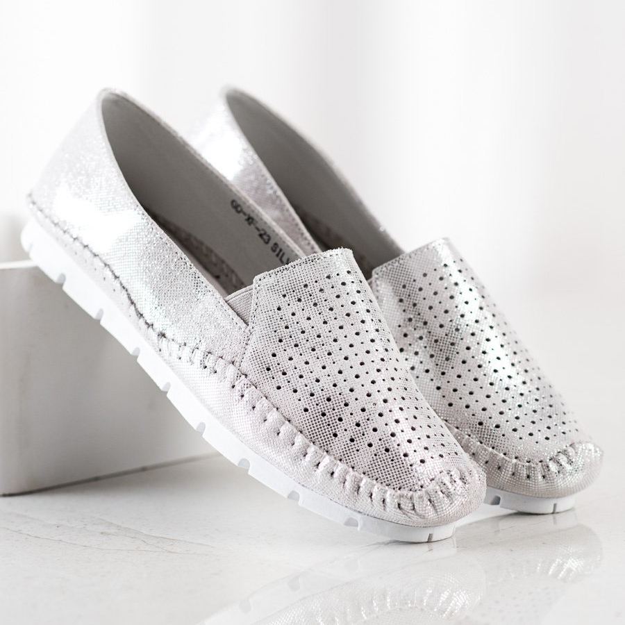 I mocassini in pelle Silver Goodin sono una proposta per le donne che apprezzano l'eleganza e il comfort dell'uso quotidiano. Realizzati in pelle naturale di alta qualità, questi mocassini si distinguono per un motivo traforato che conferisce loro leggerezza e freschezza, perfetti per la stagione primavera/estate. Il loro colore grigio li rende un elemento universale del guardaroba, abbinabile sia allo stile casual che a quello più formale.